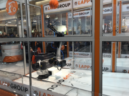 此次展會(huì)最大的宣傳點(diǎn)就是基于德國(guó)工業(yè)提出的工業(yè)4.0概念。基于這個(gè)宣傳點(diǎn),所以從已進(jìn)入展會(huì)區(qū)域,抬頭就能看到大量的帶有4.0標(biāo)識(shí)的各大品牌的巨幅廣告及宣傳標(biāo)語(yǔ)。也許大部分人對(duì)于所謂的工業(yè)4.0并沒(méi)有具體的直接的概念,但其實(shí)它已經(jīng)開(kāi)始逐漸的體現(xiàn)并滲透在我們的日常工作和生活中。比如:人與智能機(jī)器人的交流、智能物聯(lián)網(wǎng)等相關(guān)概念及應(yīng)用。